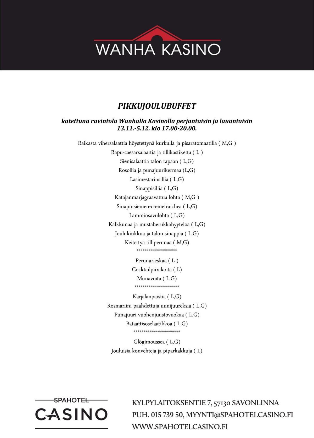 Sääntömääräinen syyskokous pidetään Casinolla. Pikkujoulubuffet Wanhalla Kasinolla kokouksen jälkeen.